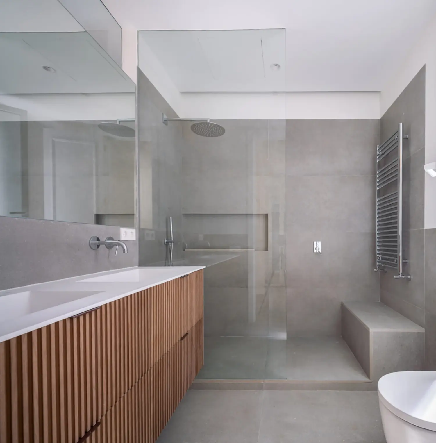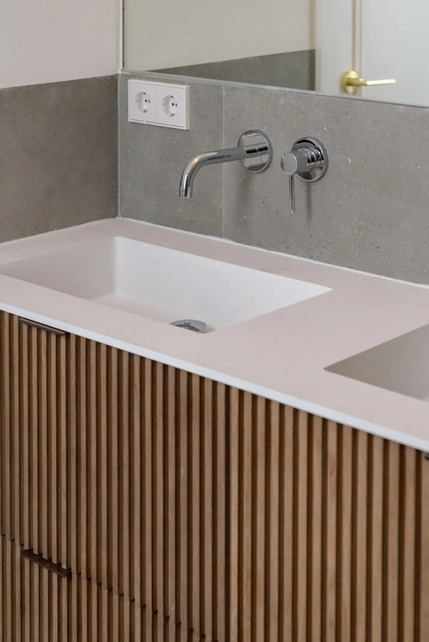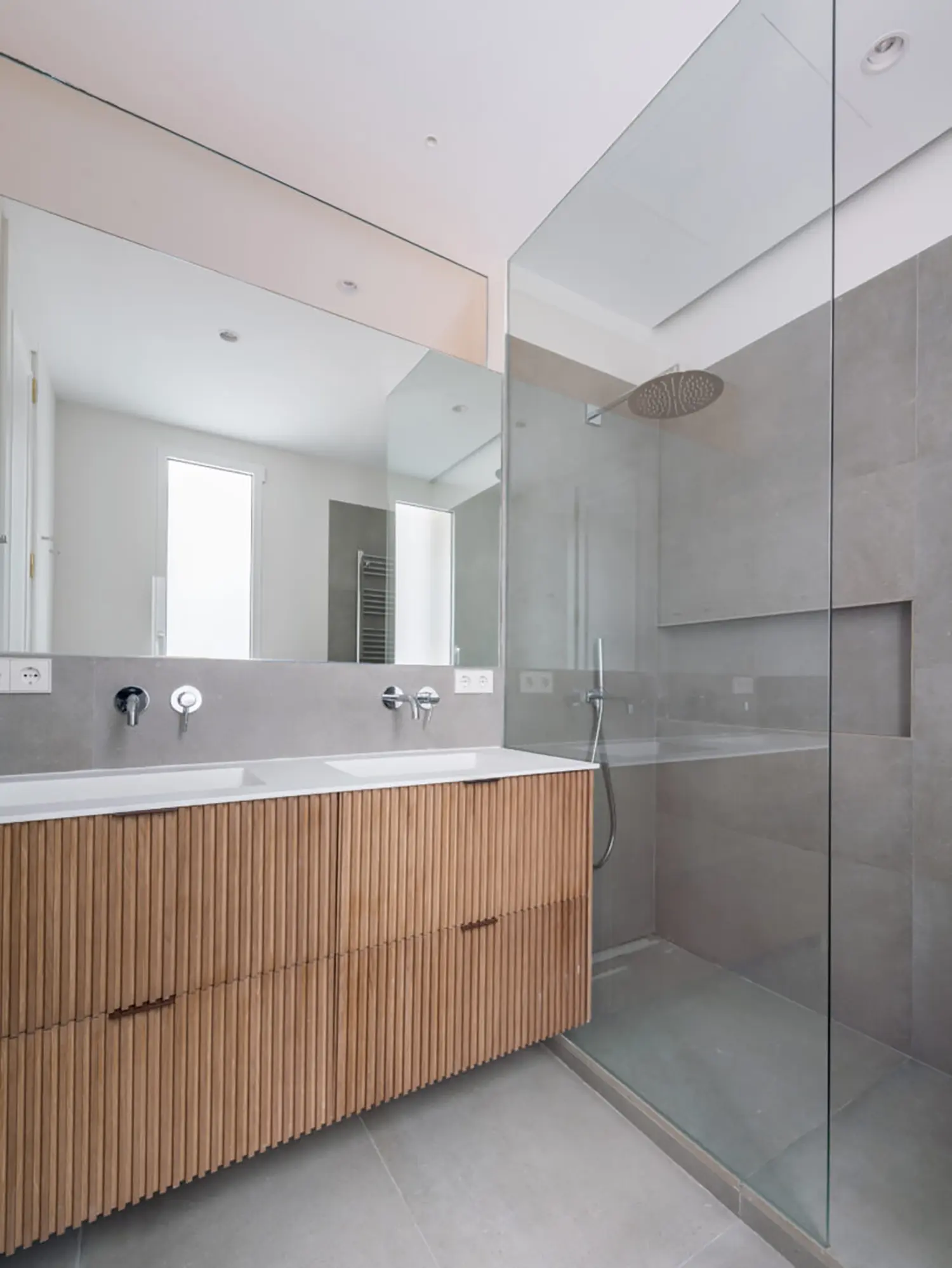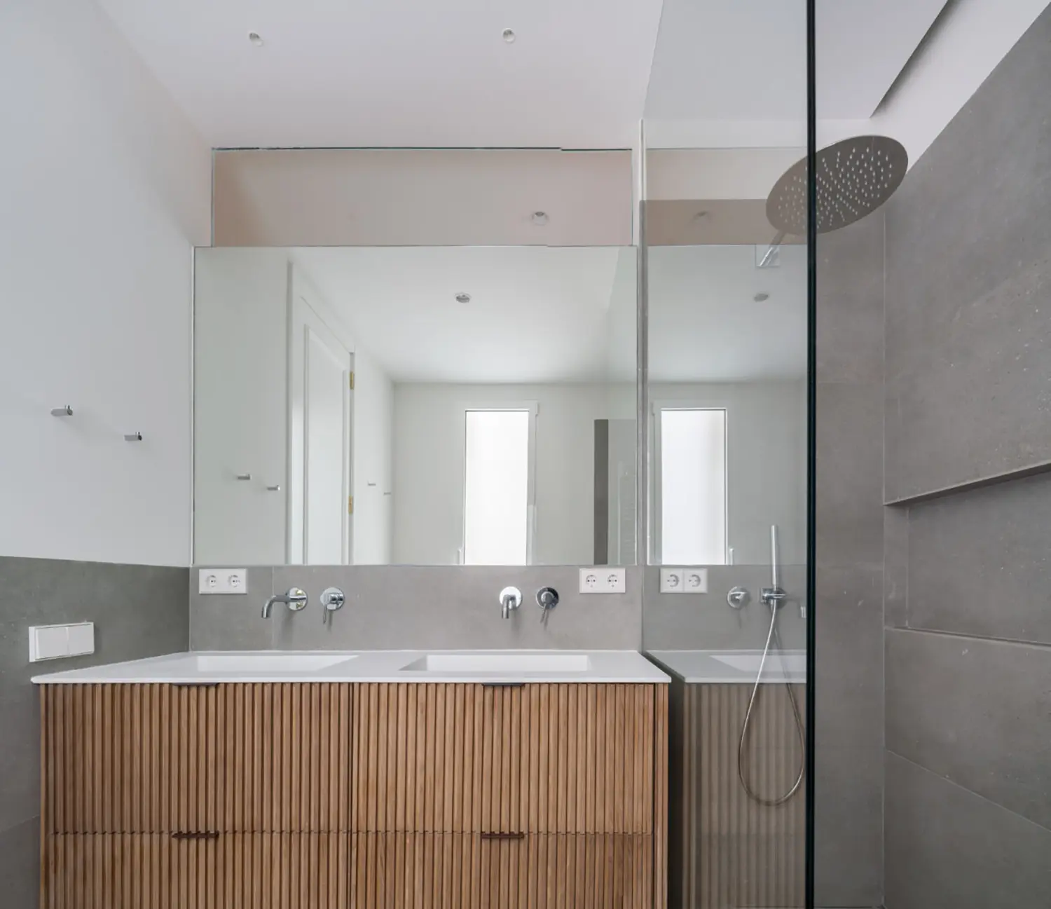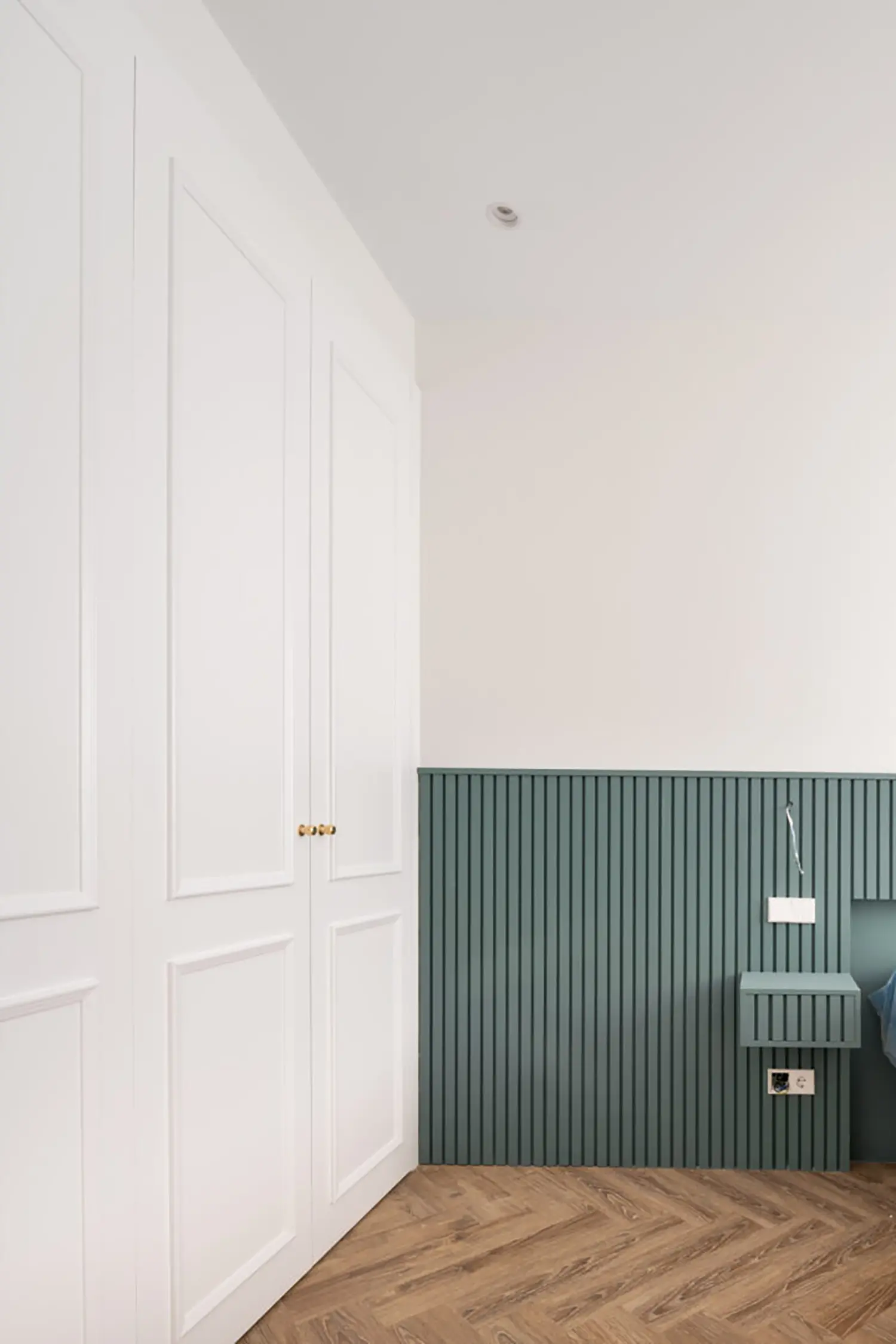 Ubicada en el centro de Madrid en un edificio clásico, esta vivienda combina el encanto de la arquitectura clásica con elementos modernos. Los techos altos y las molduras ornamentadas en paredes y techos aportan una sensación de amplitud y elegancia. El suelo de espiga en madera complementa el diseño y hace un guiño a la arquitectura clásica de la ciudad.