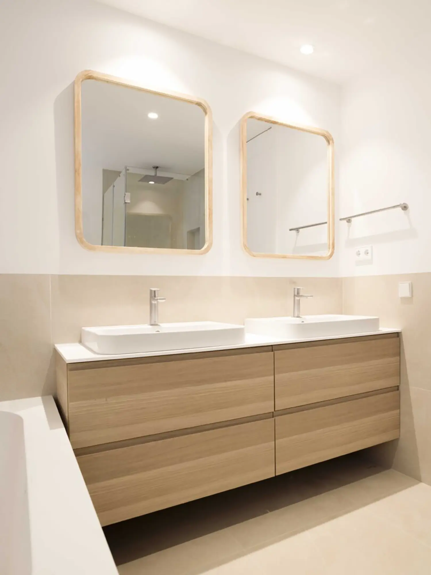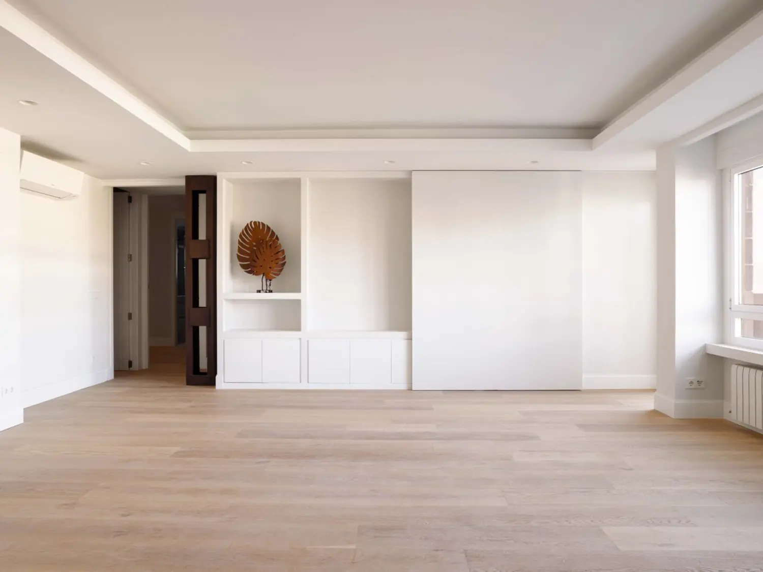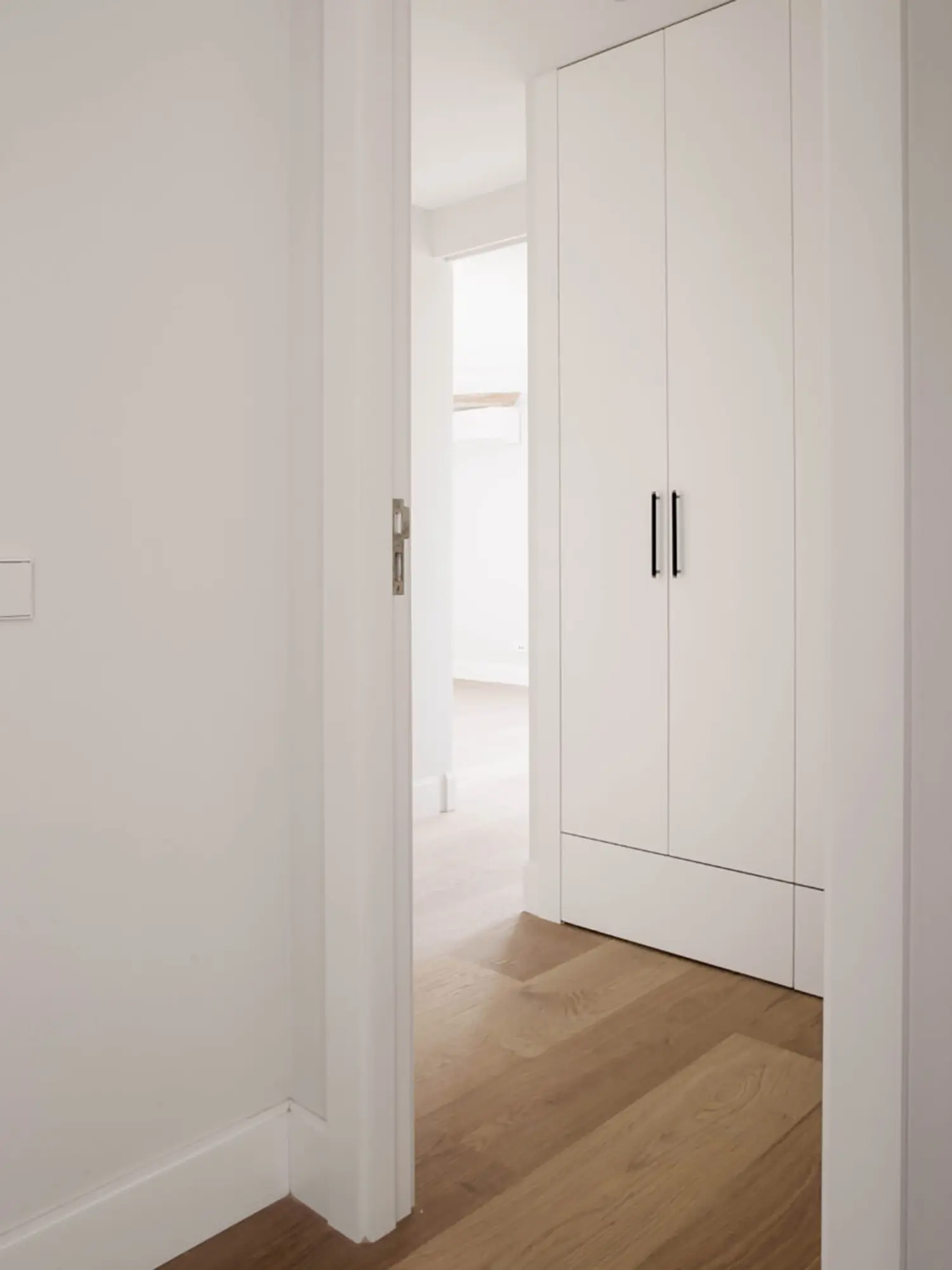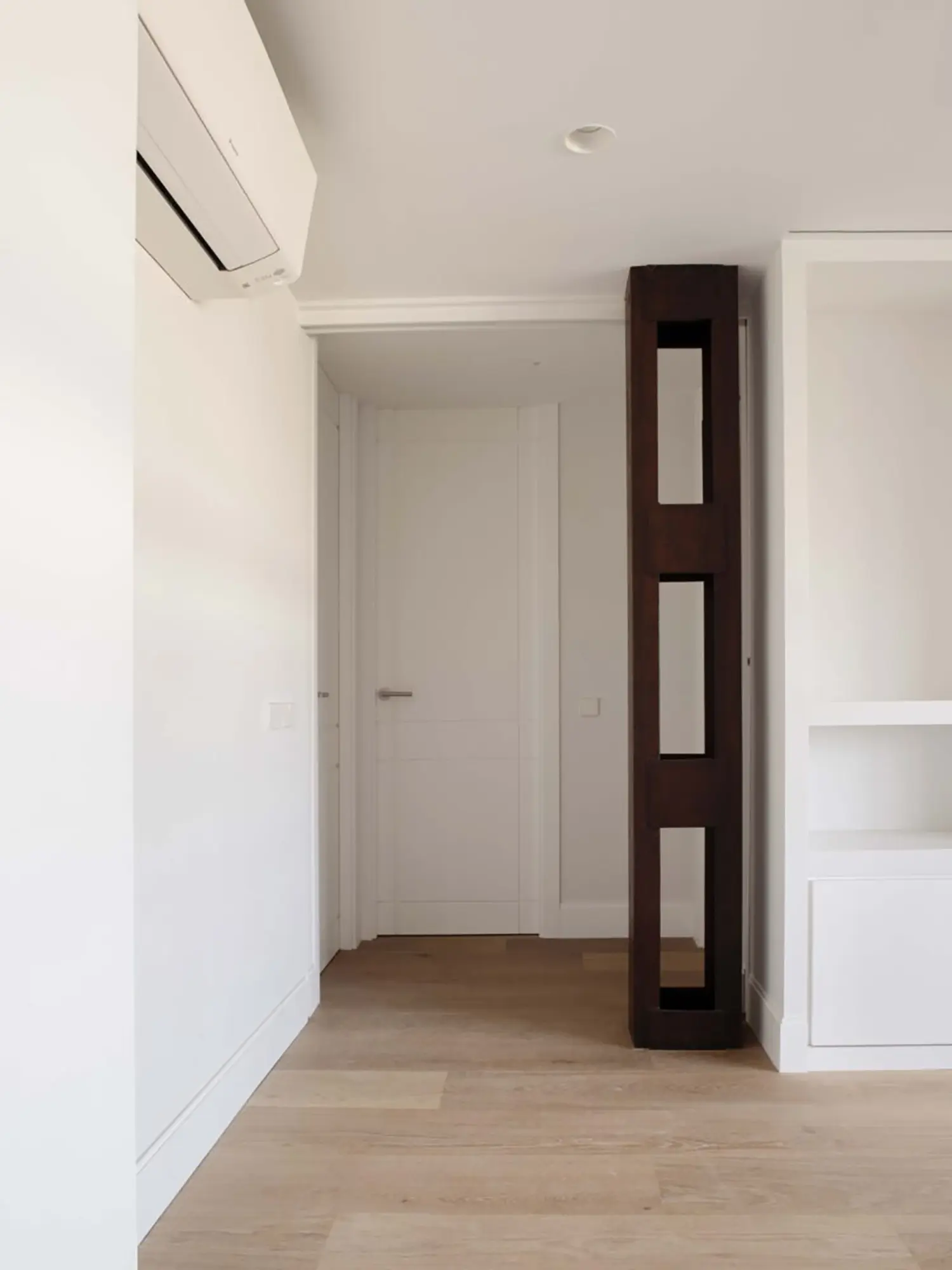 Esta vivienda tenía buena disposición de espacios, pero se ajustó su distribución y los tamaños para adaptarse a las nuevas necesidades de nuevos propietarios, además como siempre todas las instalaciones y acabados, y modernizando su estilo gracias a la iluminación integrada, a los materiales utilizados y a elementos como la recuperación del pilar metálico visto en el salón.