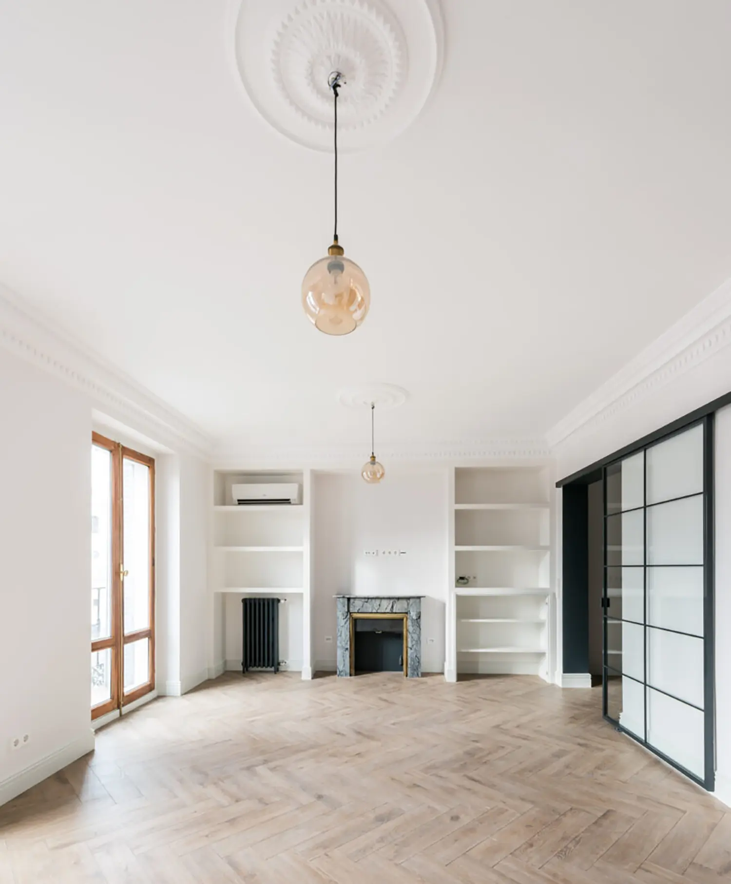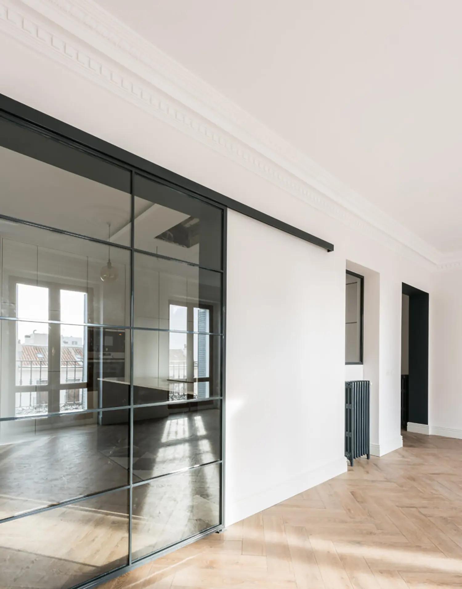 Esta vivienda se encuentra en uno de los barrios del centro de Madrid, por lo que su distribución fue algo complicada: con una forma alargada, pasillos estrechos y muy poca fachada exterior, caso típico de los edificios antiguos.
